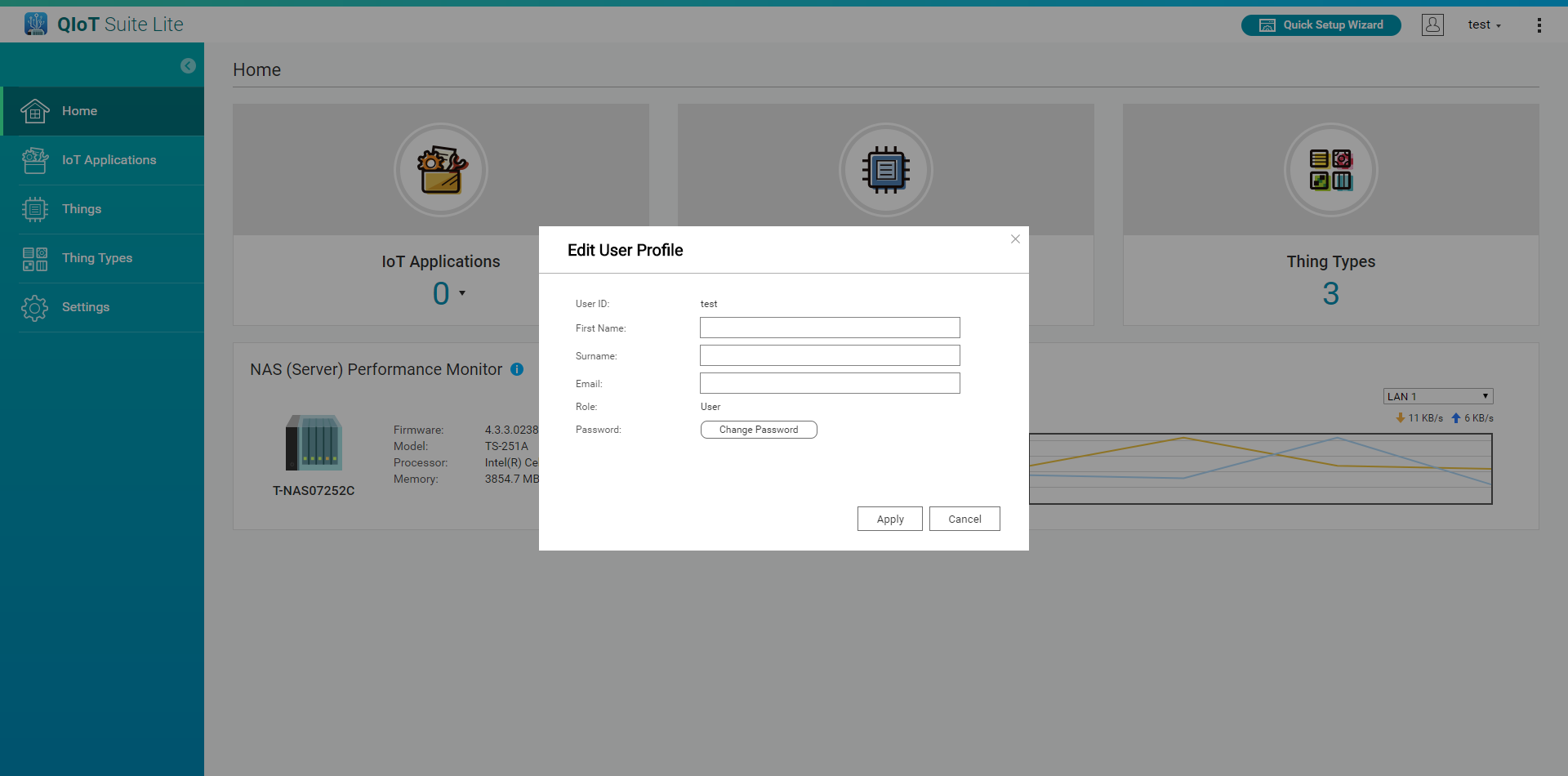 Edit user settings (the admin account can not be edited. To change the password, you must go to QTS)