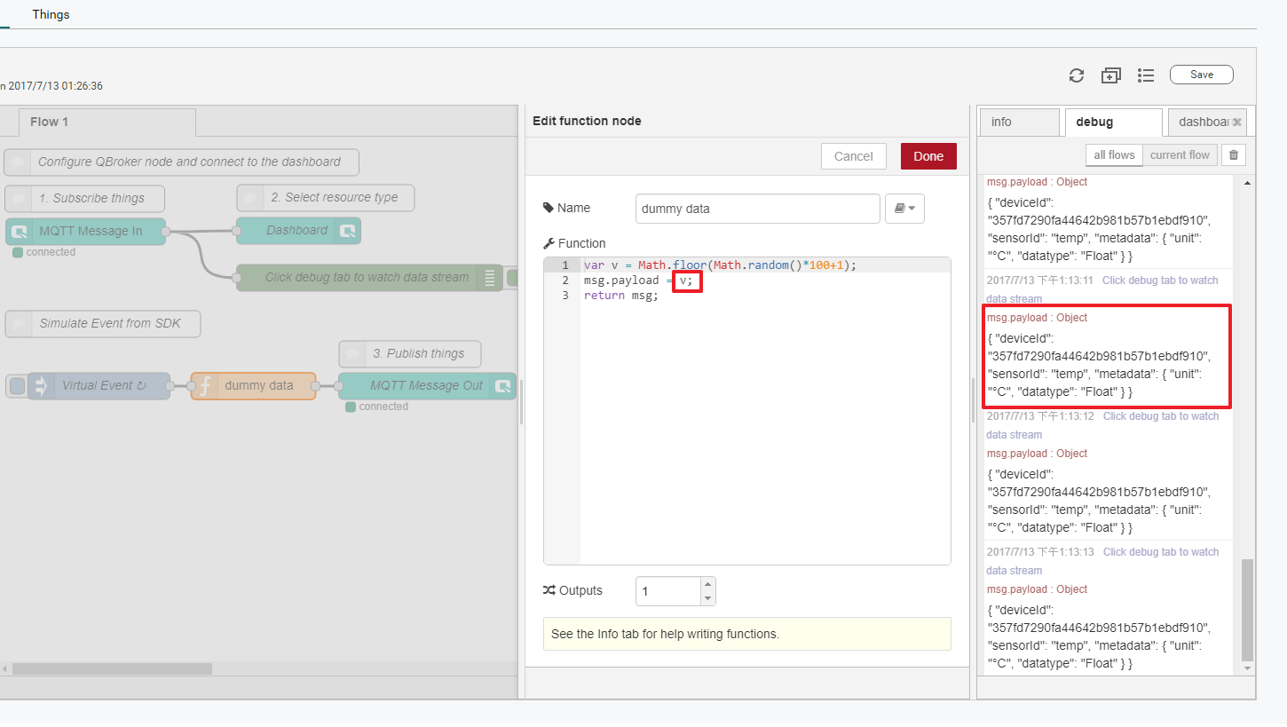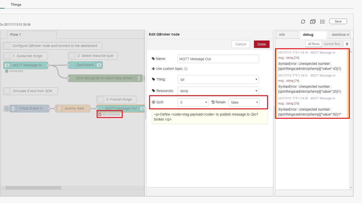 (Note: If QBroker Out is sent to the Sample Code provided by QIoT, the outgoing data must also be