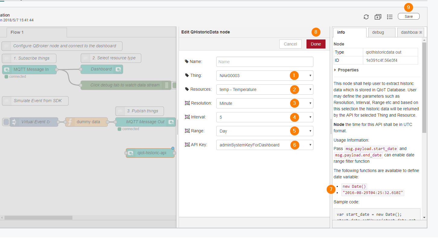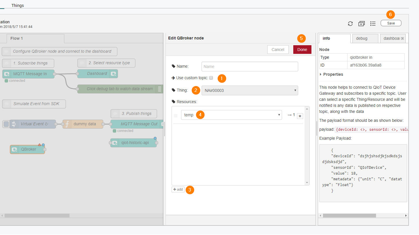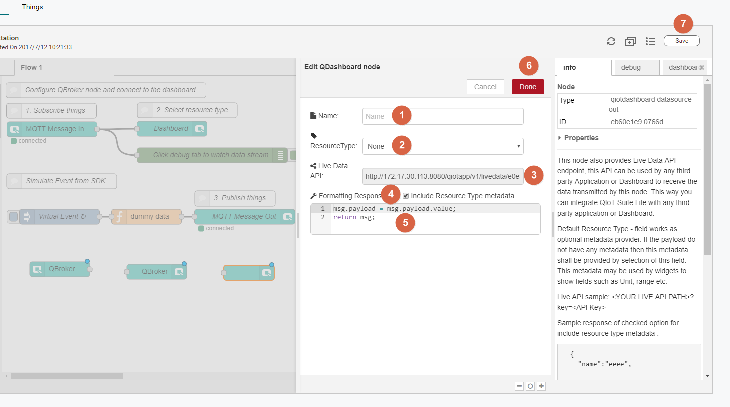 QDashboard: This node provides a Live Data API endpoint. This API can be used by any third party Application or Dashboard to receive the data transmitted by this node.